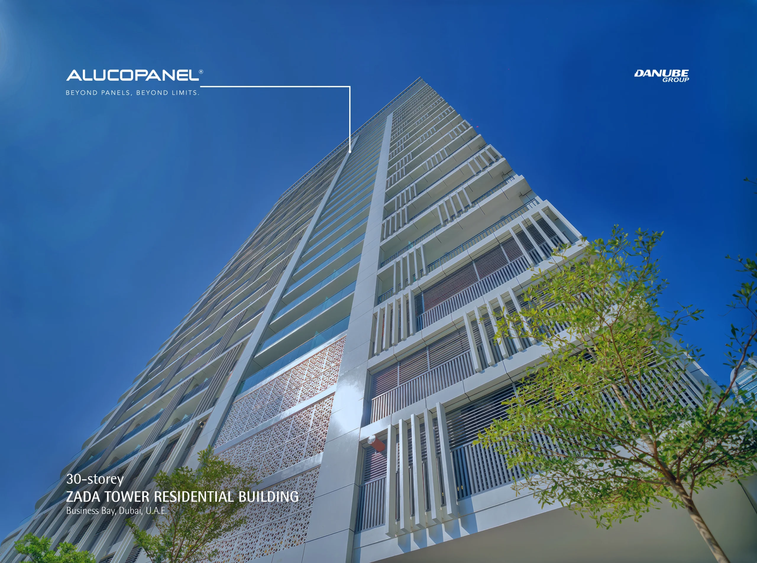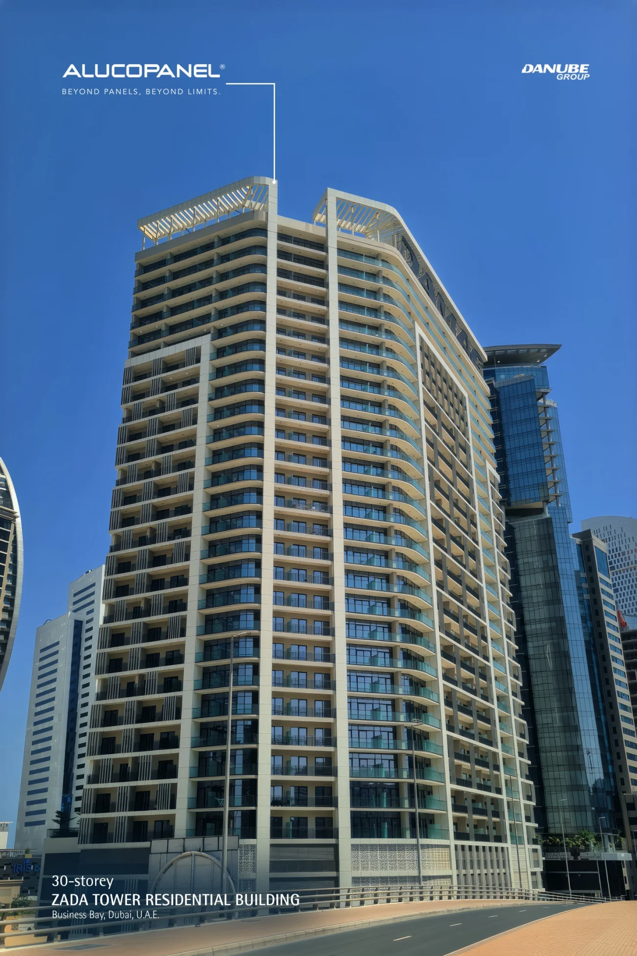 Dubai stands out with its striking Alucopanel® A2 cladding in high-gloss pearl white, featuring 2-meter width panels that are fully approved by Dubai Civil Defence for fire safety and long-term performance.