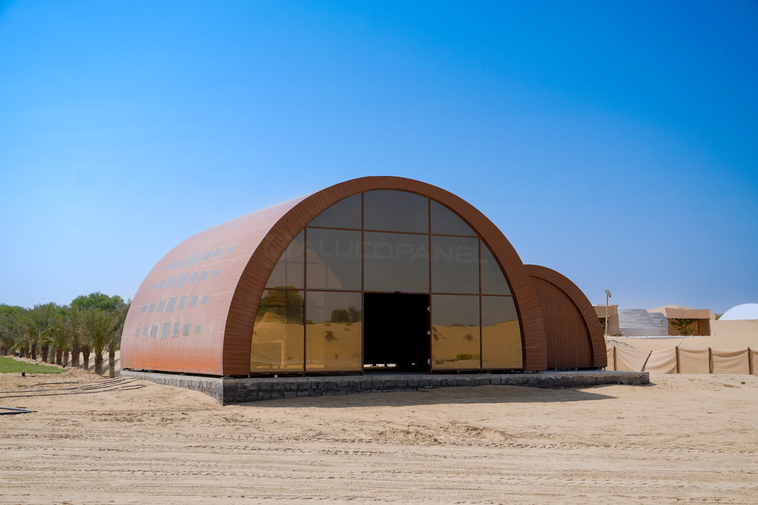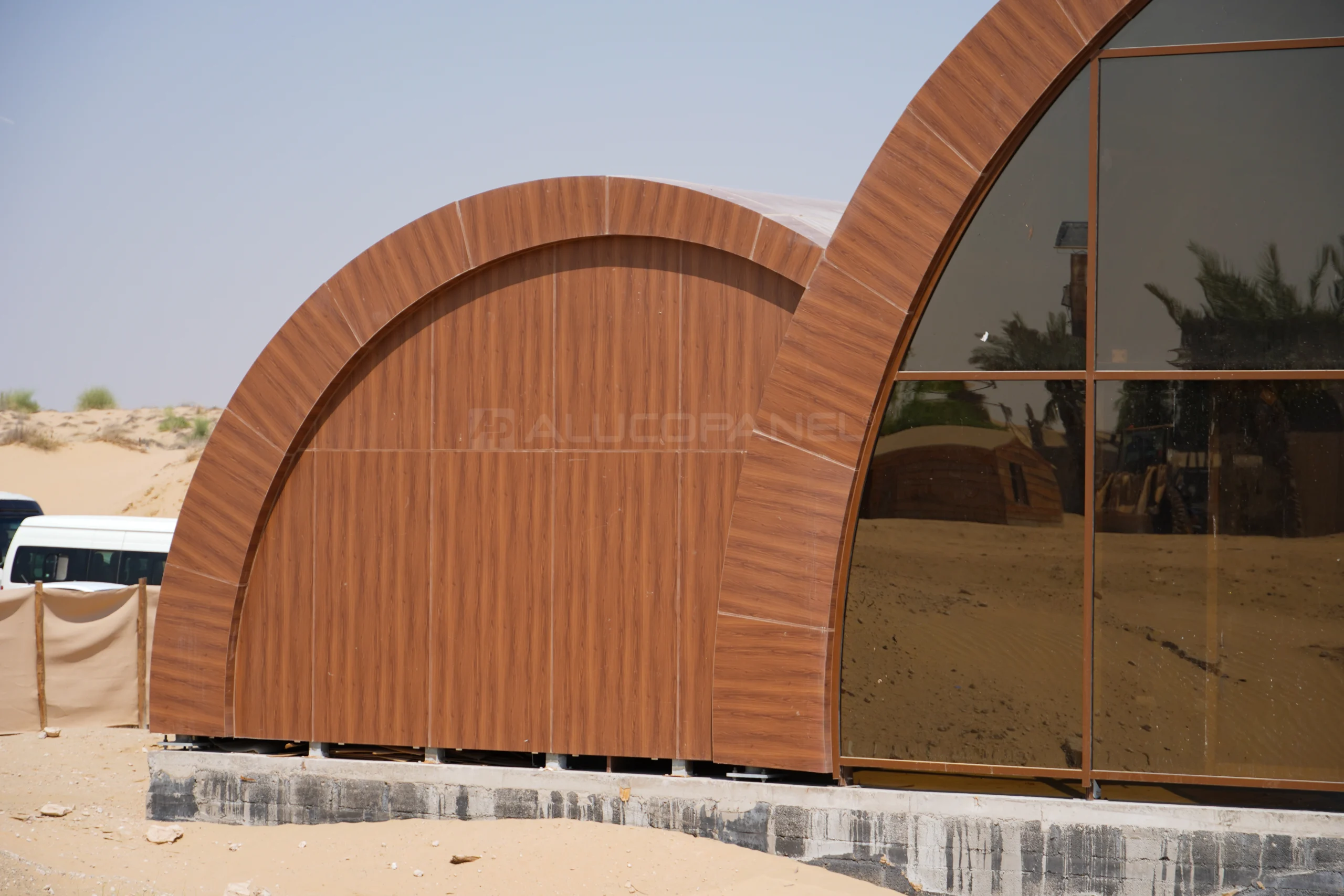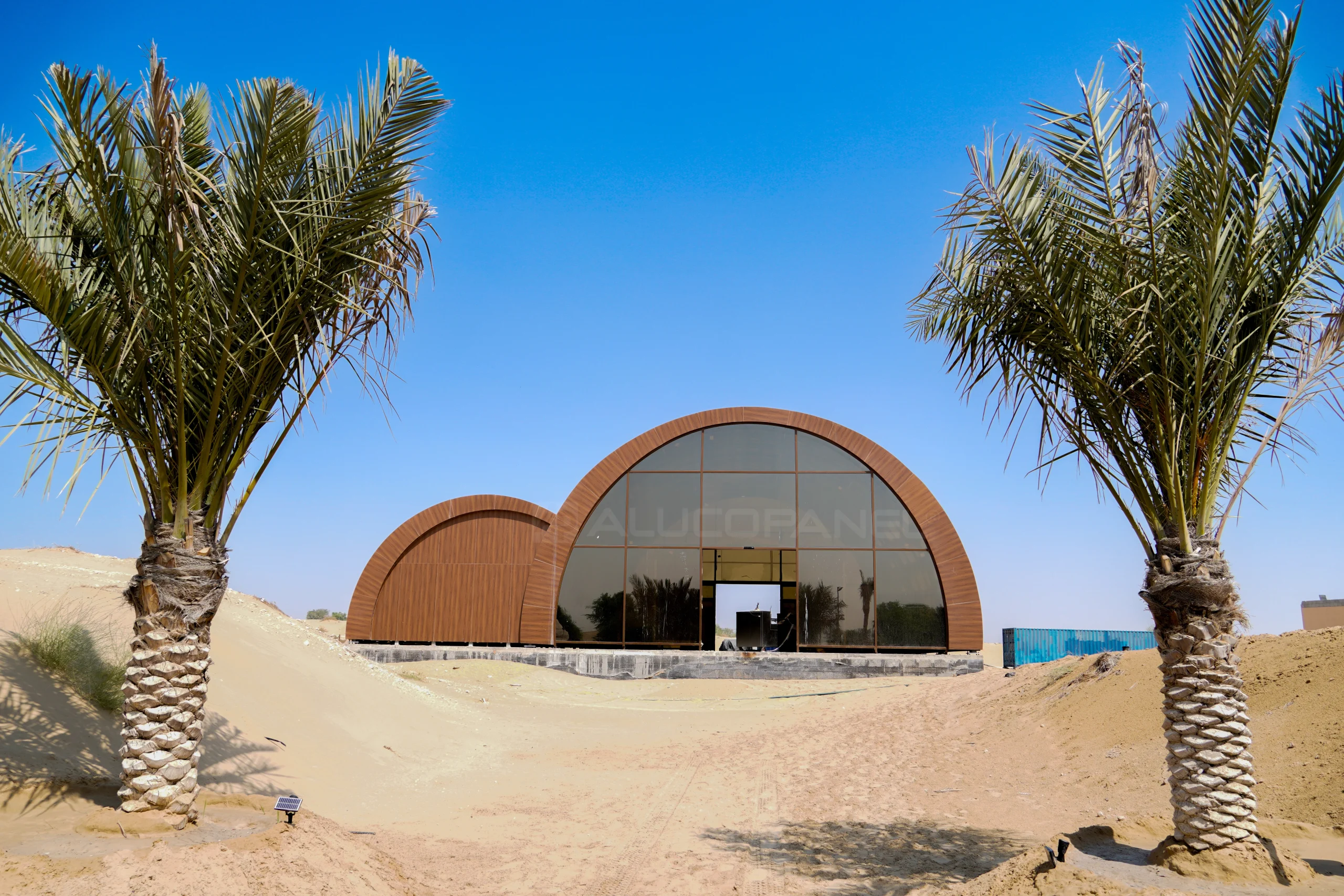 Amid the serene sands of Al Marmoom, Dubai, stands an architectural statement designed with Alucopanel® FR in Oak Wood finish, where performance meets artistry. Architects envisioned warmth, luxury, and precision, and the Alucopanel Natural Series brought that vision to life. With rich wood grains and natural textures, the façade radiates warm elegance and refined character. Even in the challenging desert climate, Alucopanel® proves its strength and quality, combining fire safety with natural beauty for a lasting impression.