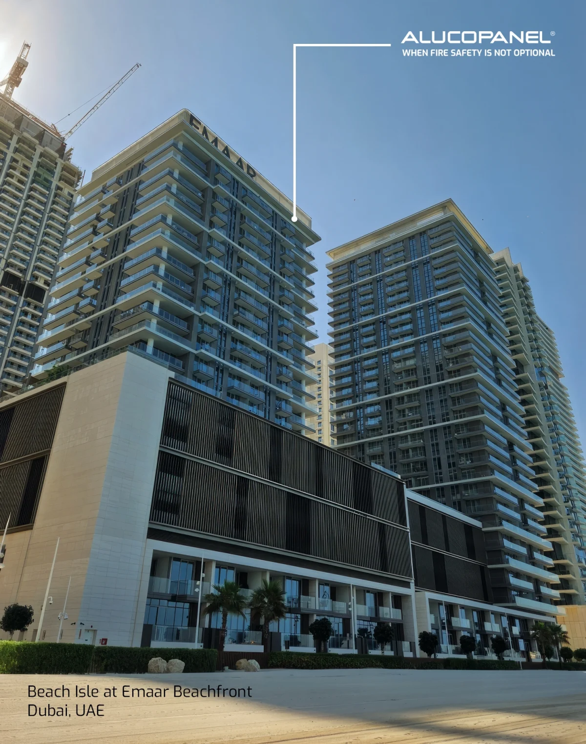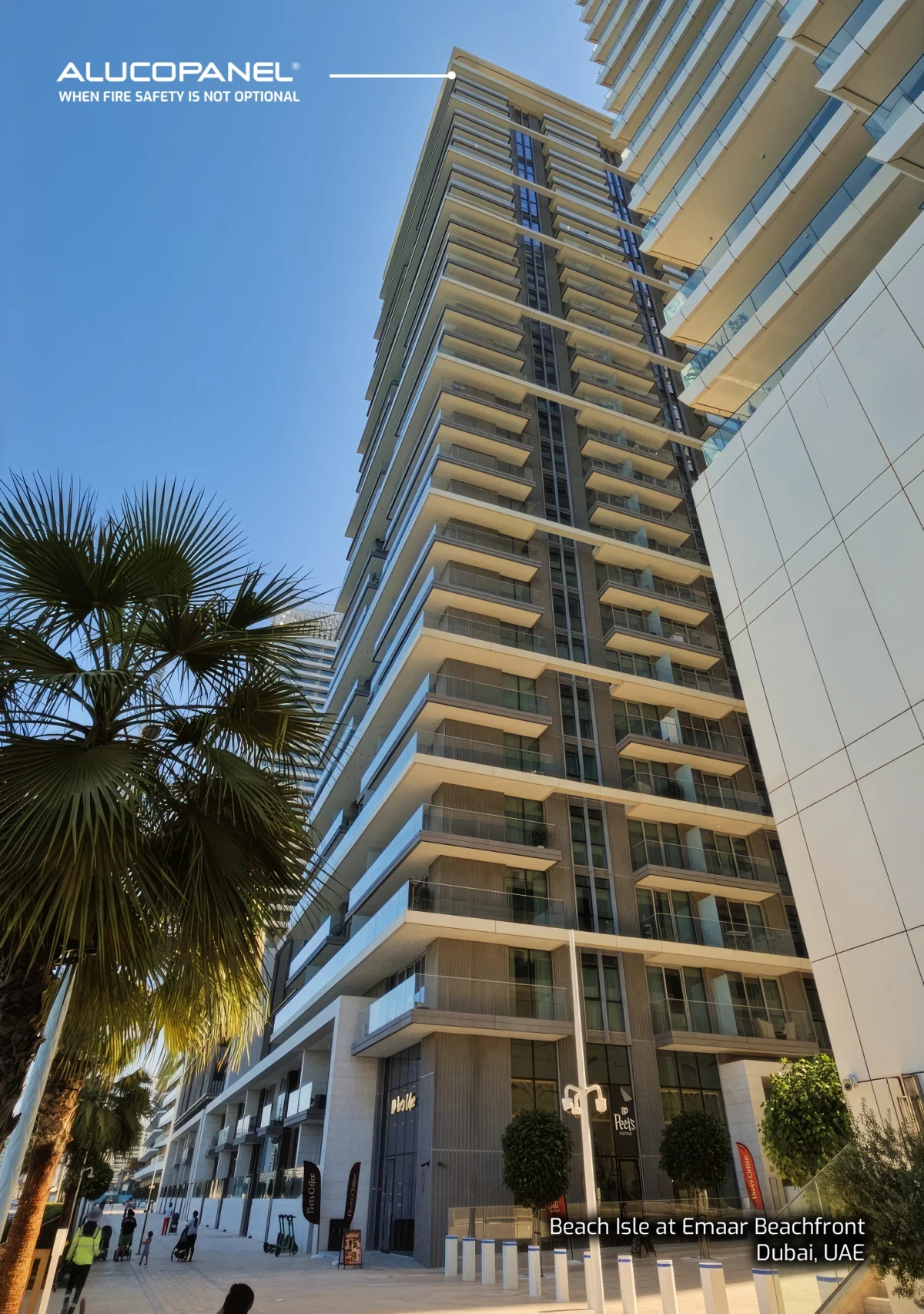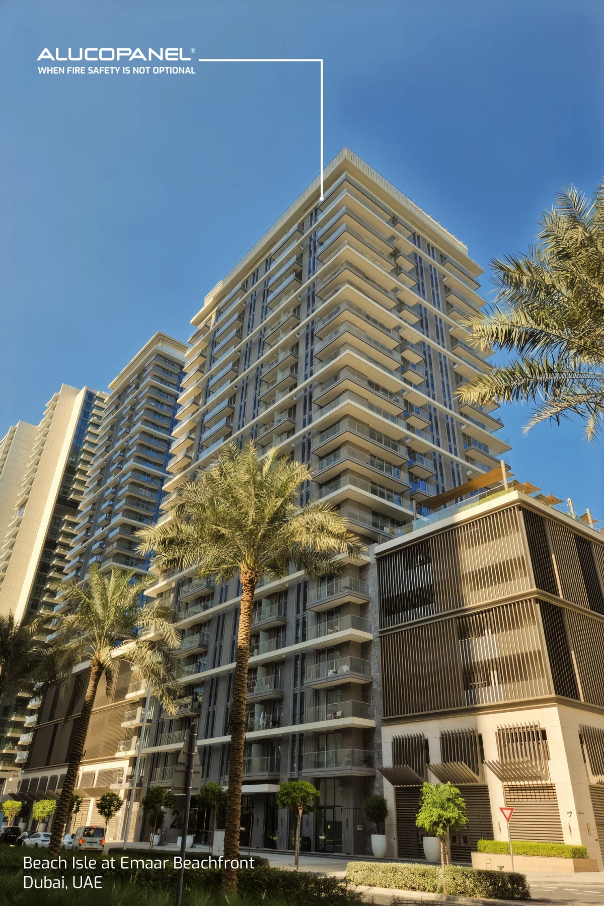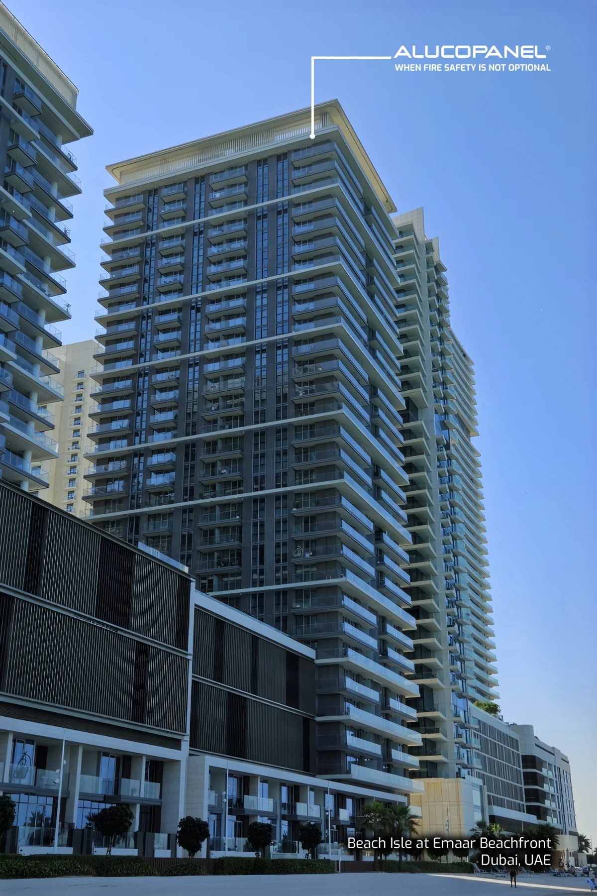 Beach Isle, located on the prestigious Emaar Beachfront in Dubai, is a modern high-rise residential tower that embodies architectural elegance and coastal charm. For its façade, the project relied on Alucopanel® A2 with the proprietary Locked Core Formula, ensuring certified fire safety, long-term durability, and aesthetic consistency. As part of a skyline that demands both performance and prestige, Beach Isle stands as a testament to building safer, smarter, and visually striking cities. When developers like EMAAR create such iconic landmarks side by side, façade safety is never left to chance—they choose systems engineered for performance, built for trust, and proven in the real world.