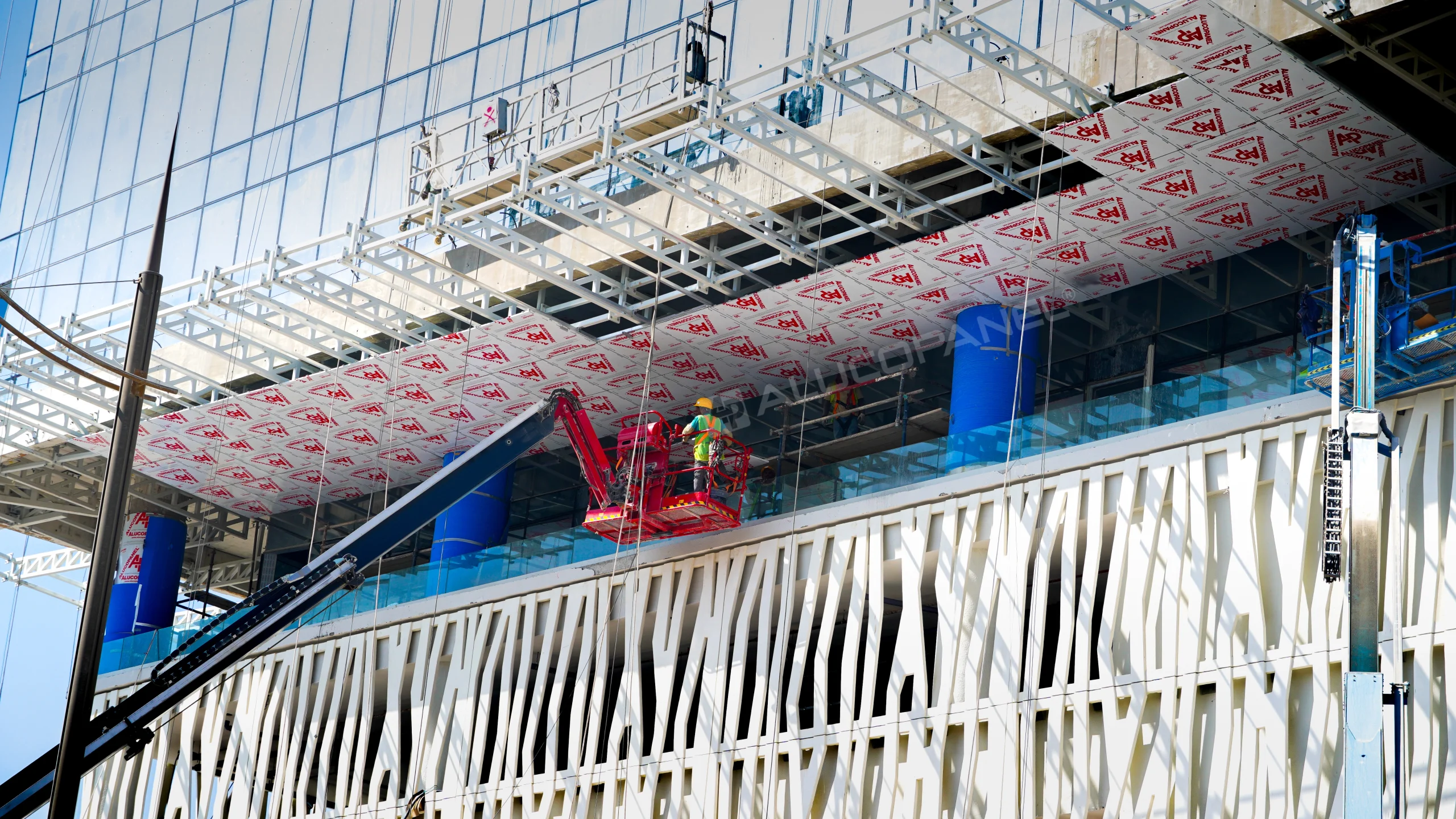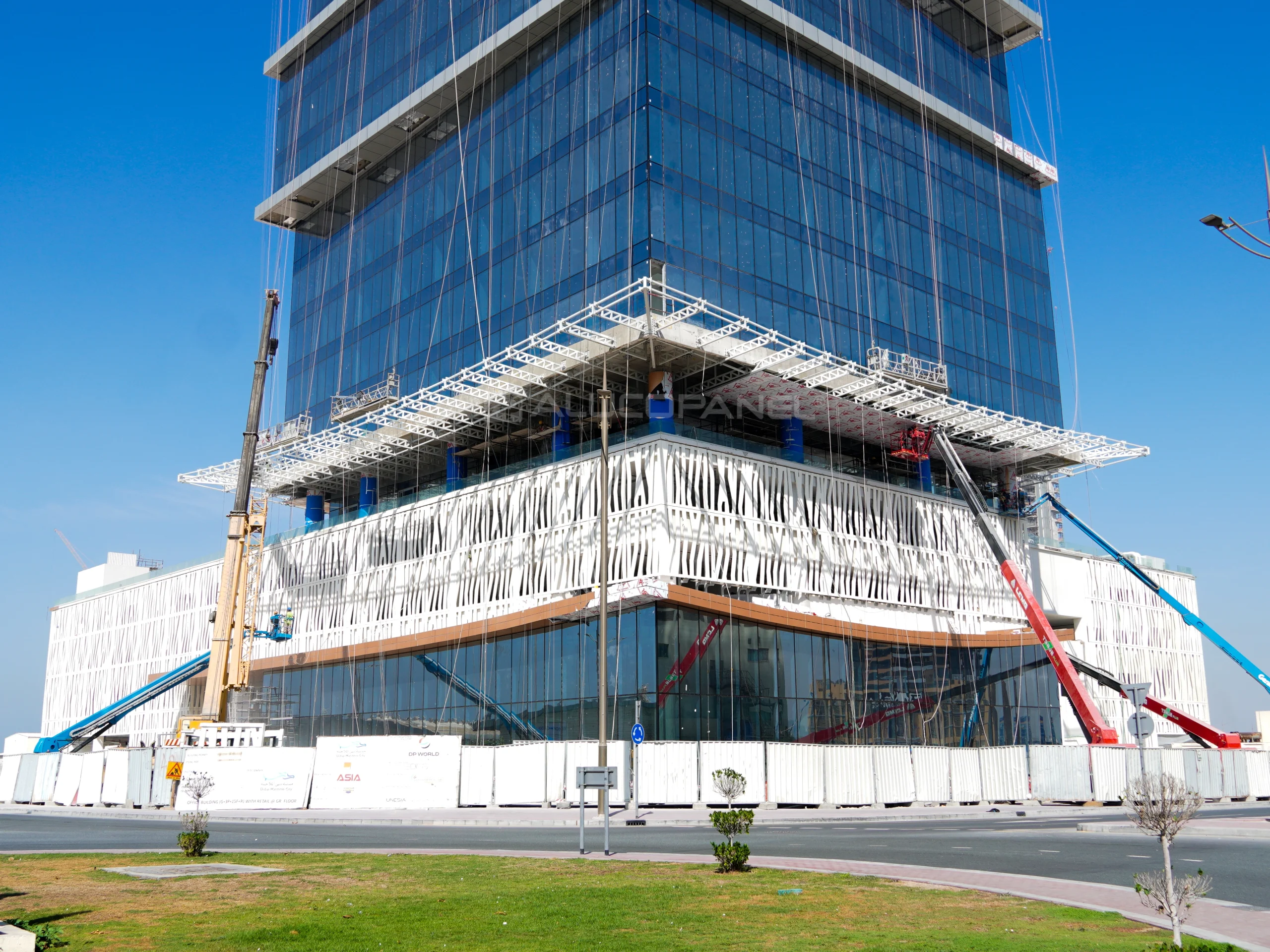 The DMC New Office Building at Dubai Maritime City showcases a refined and contemporary façade that complements the district’s dynamic waterfront development. The project features ALUCOPANEL® A2 in Metallic Brass and Champagne Silver, creating a sophisticated interplay of warm and cool metallic tones.
