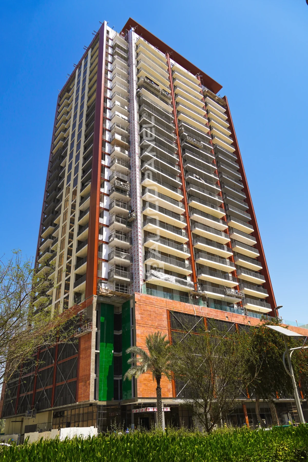 stands tall with 8,000 sqm of Alucopanel® A2, finished in APL S3444 RAL 8004 Matt Brown. This G+4P+22 storey building showcases a modern, cohesive façade that reflects both safety and sophistication—designed to endure and impress.