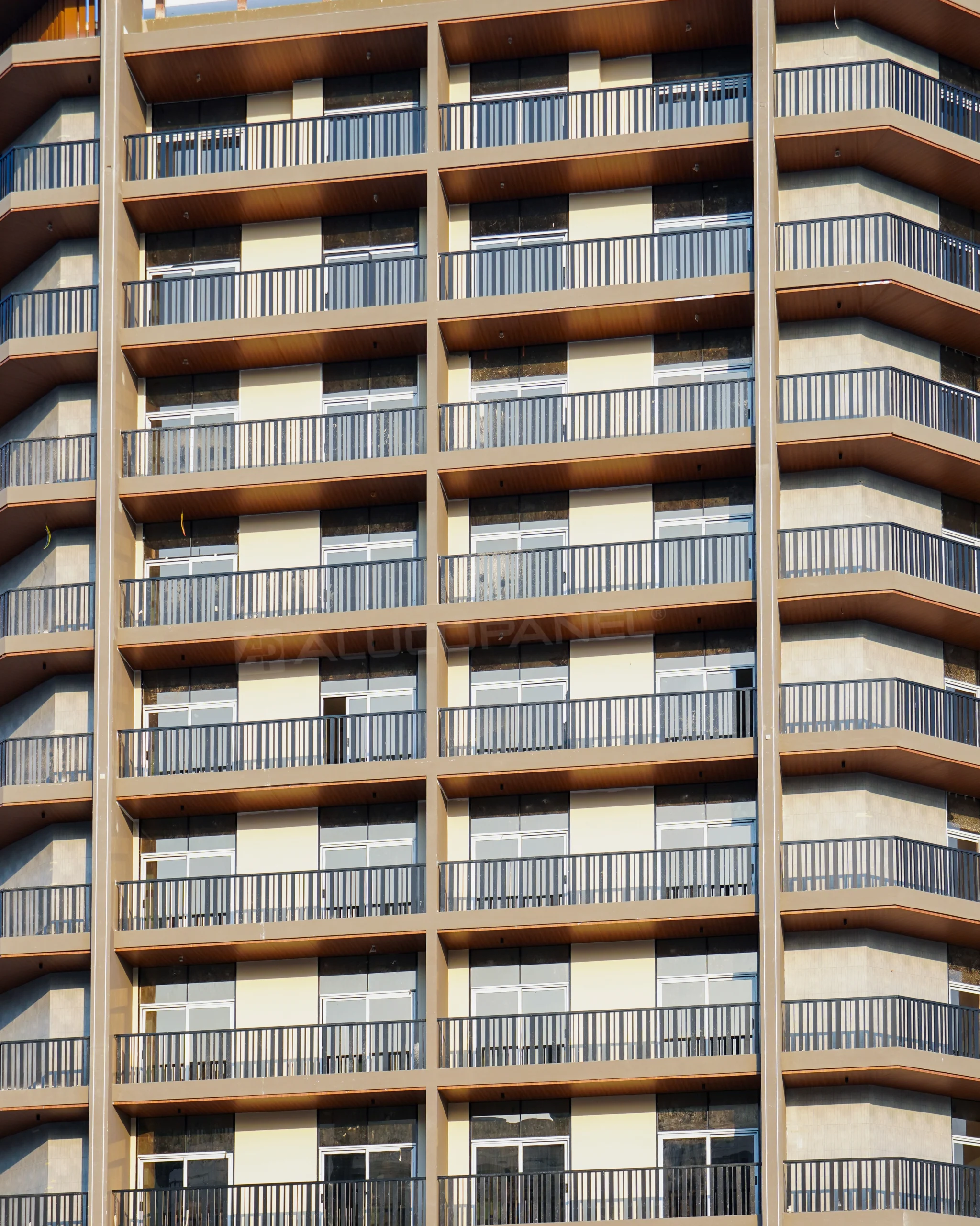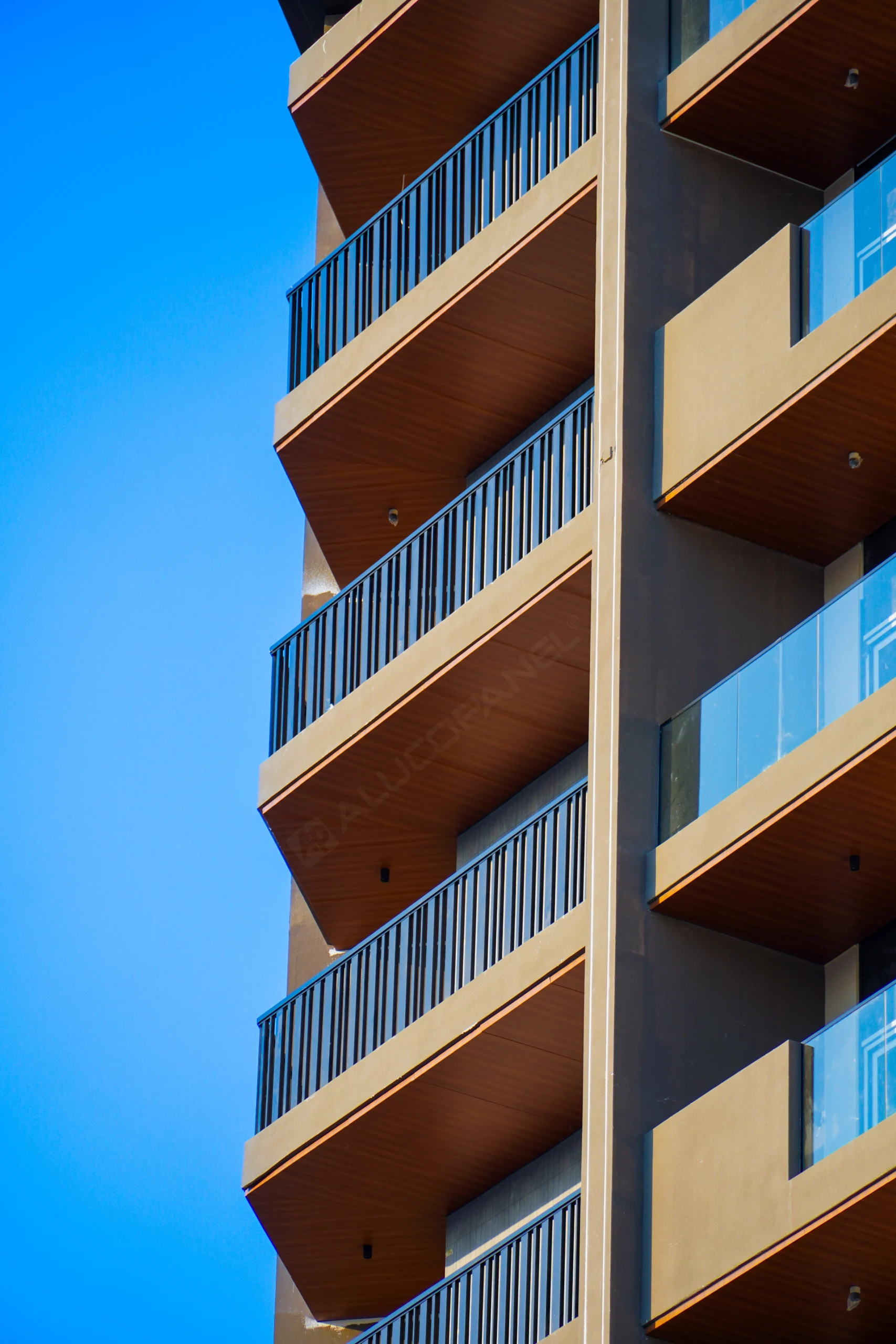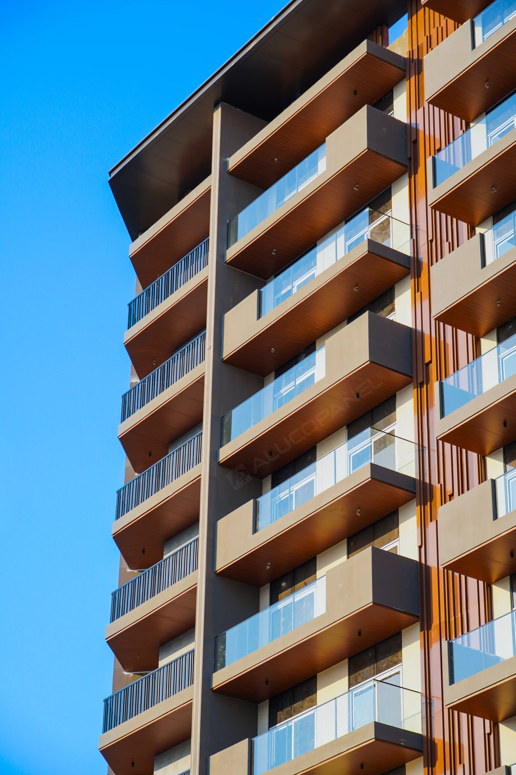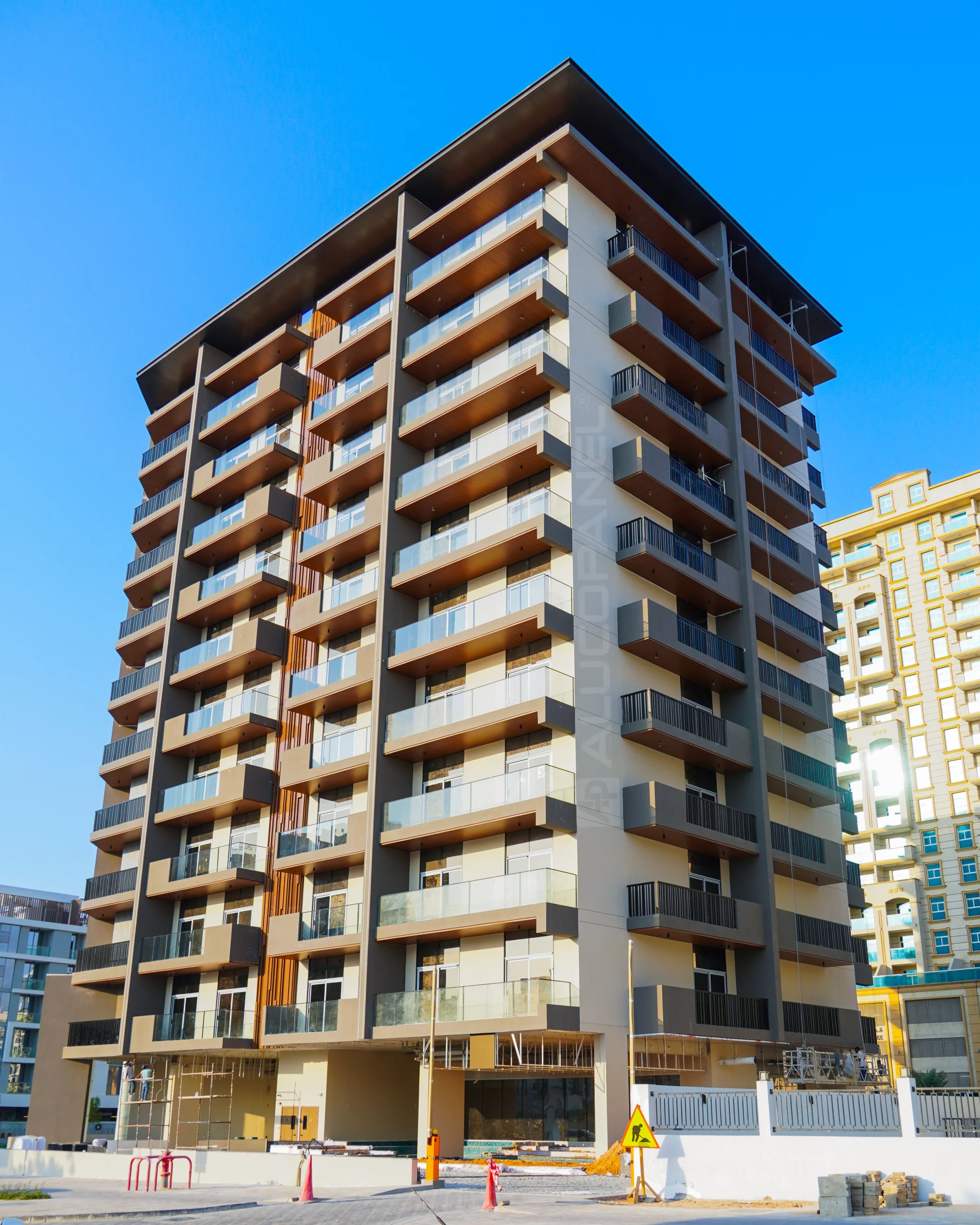 Marquis Galleria, Arjan, Dubai, Located in the vibrant community of Arjan, Dubai, Marquis Galleria is an aesthetic residential masterpiece that blends contemporary architecture with the natural warmth of wood. The façade features Alucopanel® A2 aluminium composite panels in Wooden Finish W60 OAK, combining the timeless beauty of wood with the strength, safety, and durability of metal. A showcase of lasting elegance and fire-safe performance, this project reflects Alucopanel’s dedication to quality, innovation, and architectural excellence.
