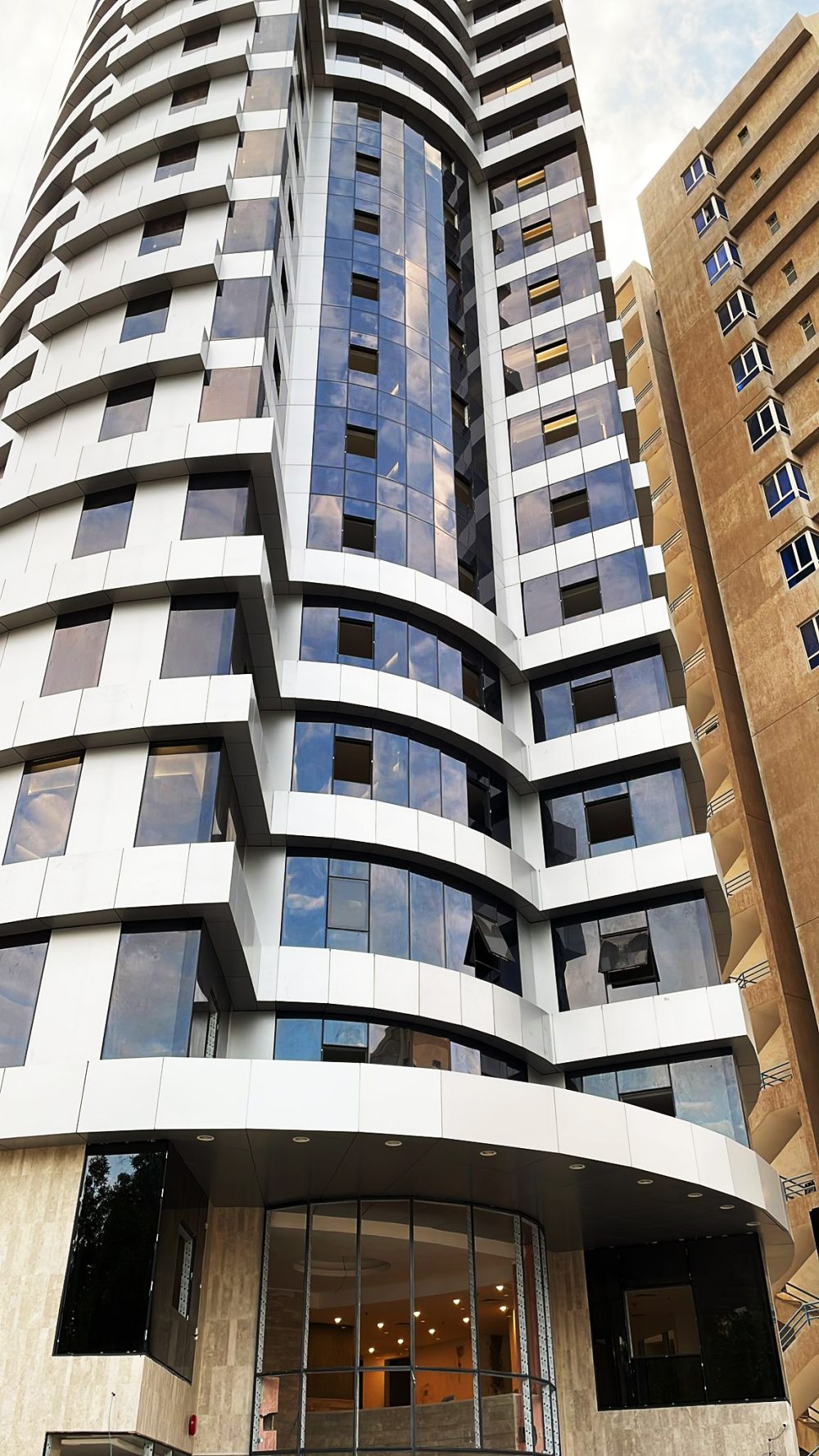 Showing you a brilliant renovation of an Old Building in Bneid Al Gar, Kuwait City with Alucopanel®, color M01 Bright Silver. It is truly a tremendous transformation into a fine Hotel, the Salam Hotel, from a plain aged building.